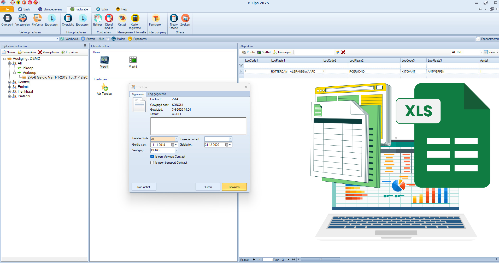 Contracten exporteren en bijwerken via Excel in e-Lips TMS